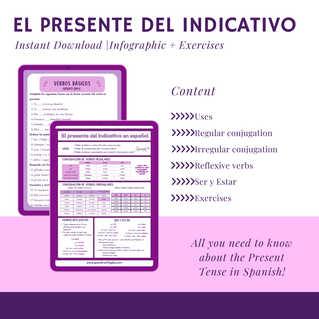 👉 Download your free Presente del indicativo study sheet with examples and conjugations: