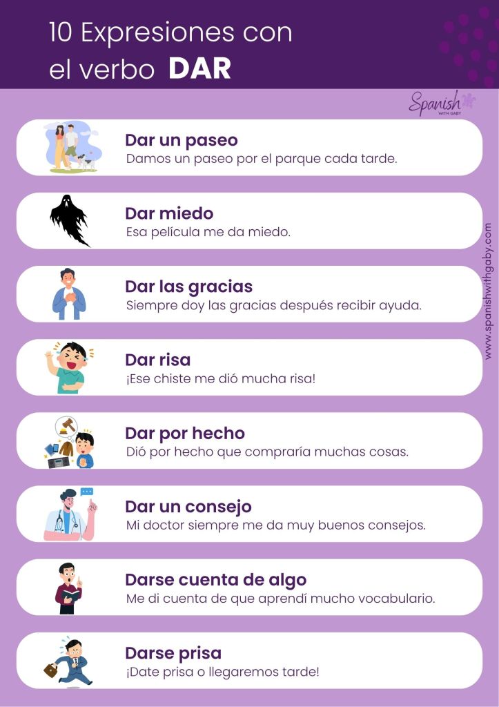 Spanish Vocabulary: Phrases with DAR – Full Material