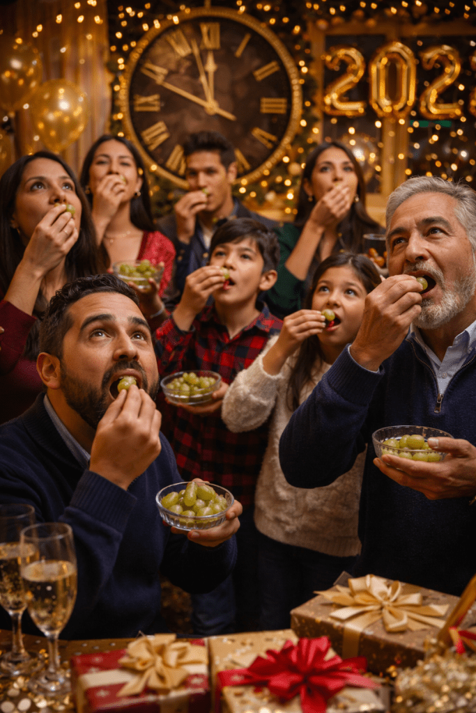 las uvas, los deseos, el brindis, la suerte, las maletas