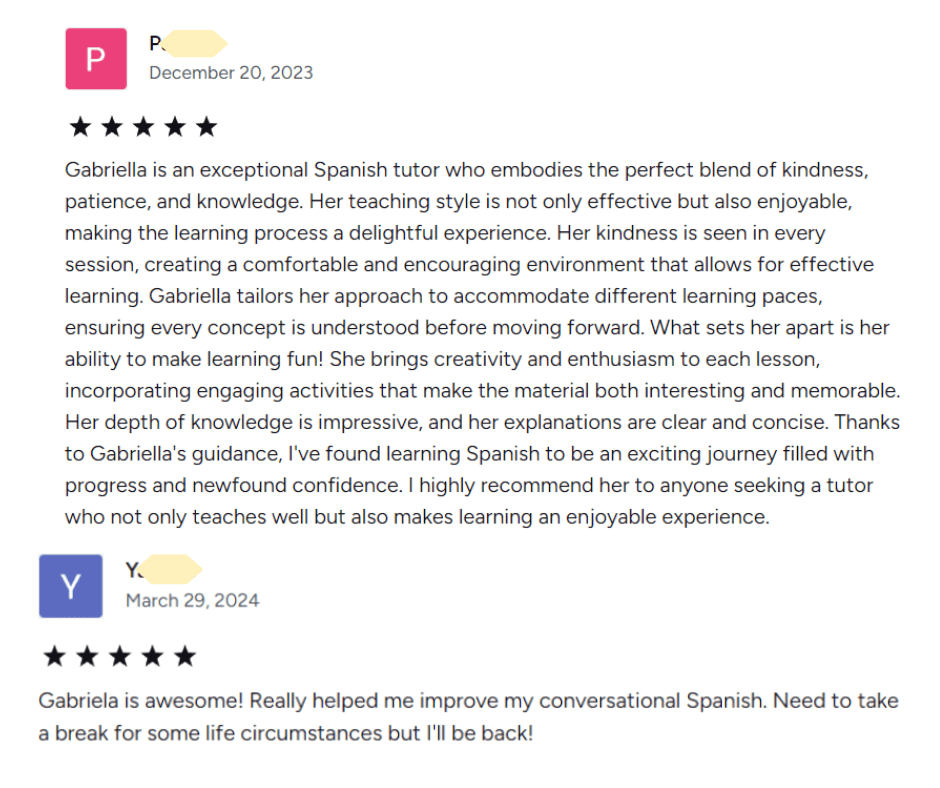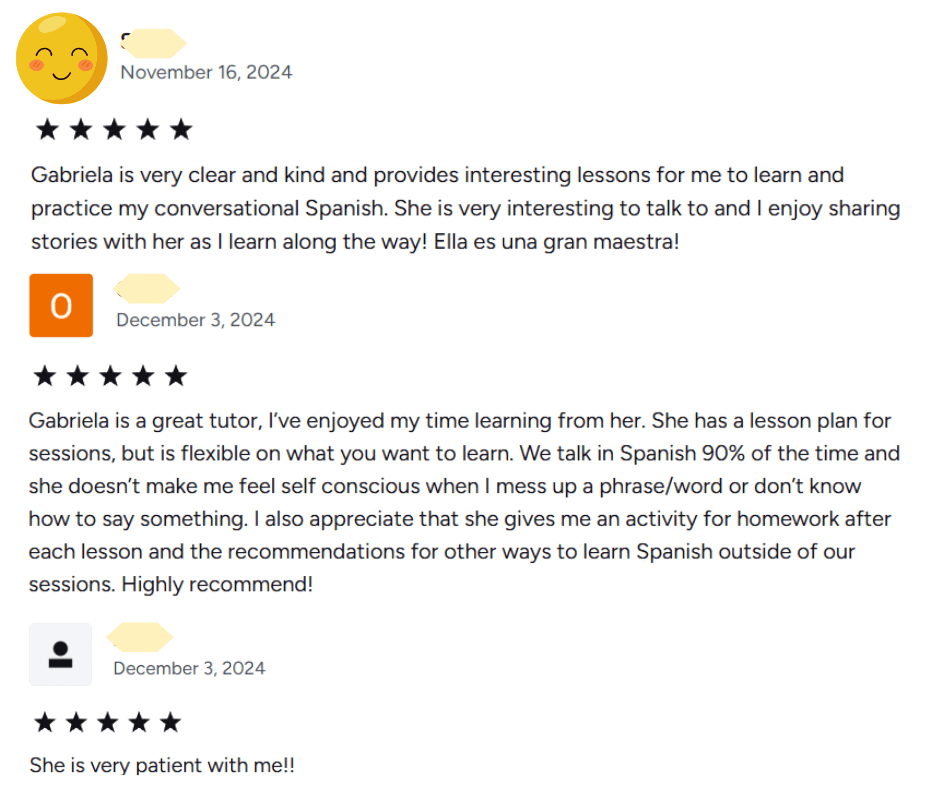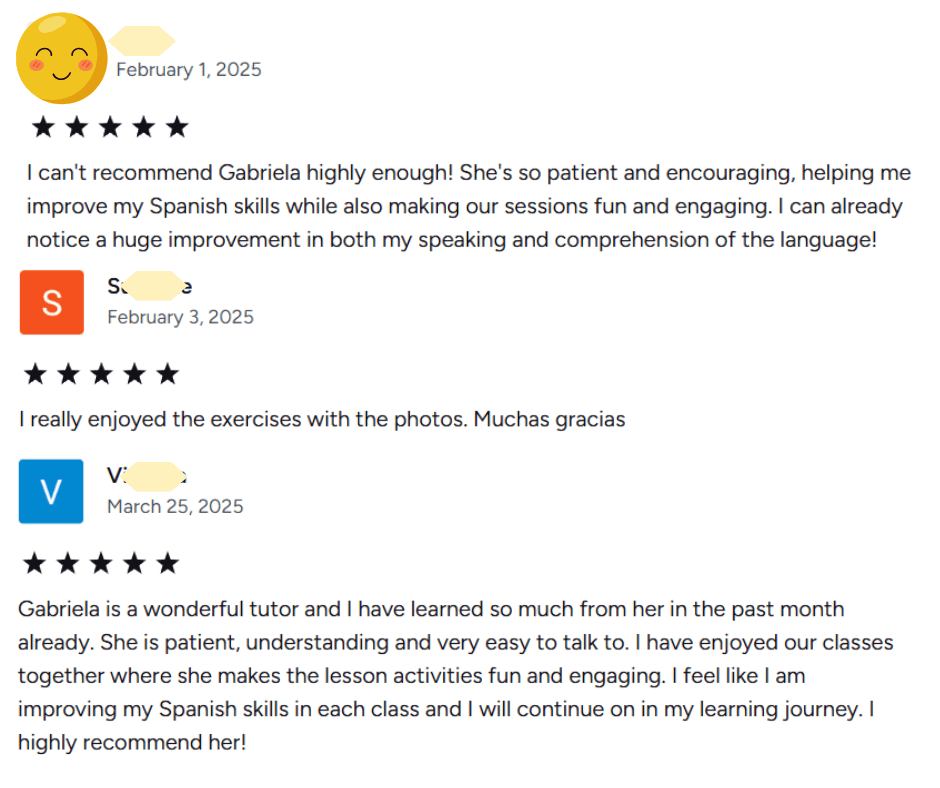 I offer 1-on-1 online classes specially designed for women who want to build confidence, speak naturally, and learn Spanish in a fun and personalized way.